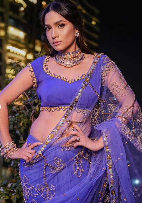 अंकिता ने अपनी साड़ी को एक भारी-भरकम एम्बेलिश्ड ब्लाउज़ और डायमंड और मोटिफ्स के चोकर के साथ स्टाइल किया था. इसके साथ उन्होंने सॉफ्ट वेवी हेयर स्टाइल किया हुआ था.