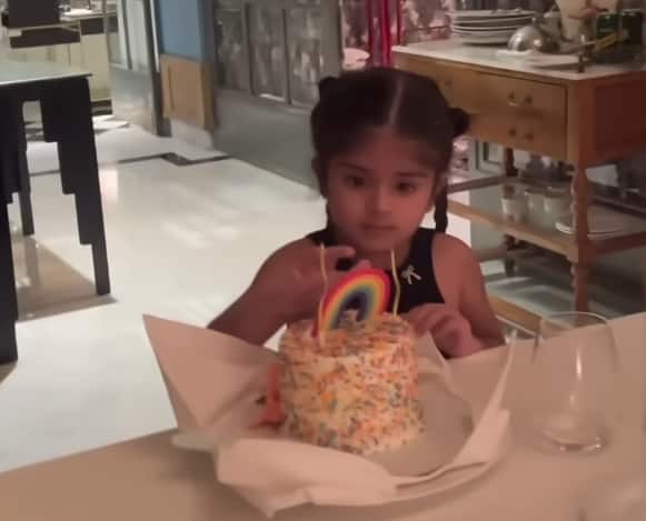 व्लॉग में आगे जियाना के केक काटने का प्यारा पल दिखाया गया है. ब्लैक टॉप, बेज स्कर्ट और ब्लैक बूट्स में सजी चार साल की जियाना दो प्यारी चोटी बनाए बेहद क्यूट लग रही थी.