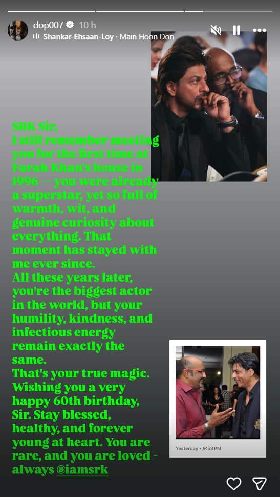 डायरेक्टर रवि के चंद्रन ने बी किंग खान को बधाई देते हुए अपने इंस्टाग्राम अकाउंट पर एक स्टोरी पोस्ट की हैं यहां उन्होंने बड़ा ही प्यारा एक नोट लिखा है.