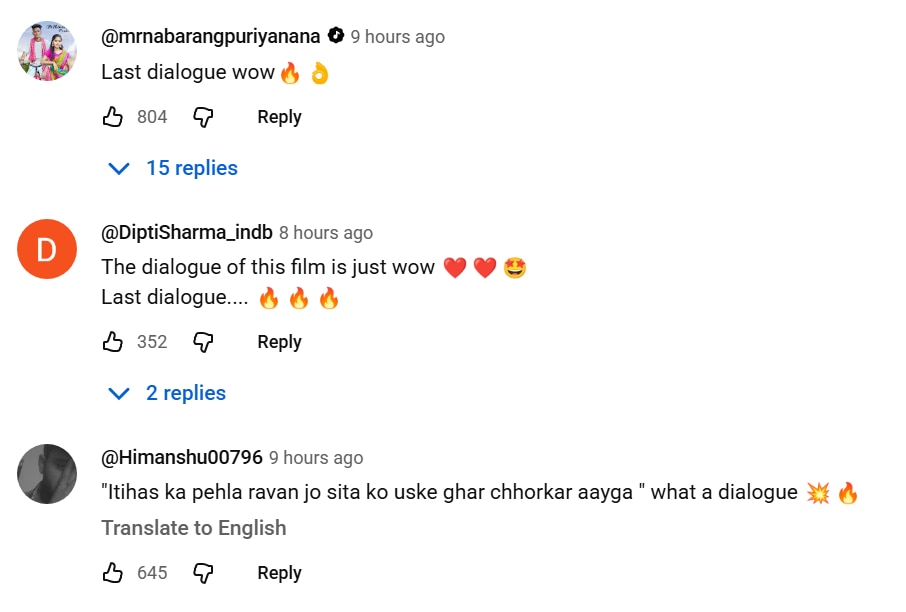 ट्रेलर के अंत में आता है वो डायलॉग जो सोशल मीडिया पर वायरल हो चुका है- 'तुम सबसे कहती फिरती हो ना कि मैं तुम्हारी जिंदगी का रावण हूं, तो इतिहास का मैं पहला रावण हूं, जो सीता को खुद घर छोड़कर आएगा.' फैंस इस डायलॉग को लेकर जमकर रिएक्ट कर रहे हैं.